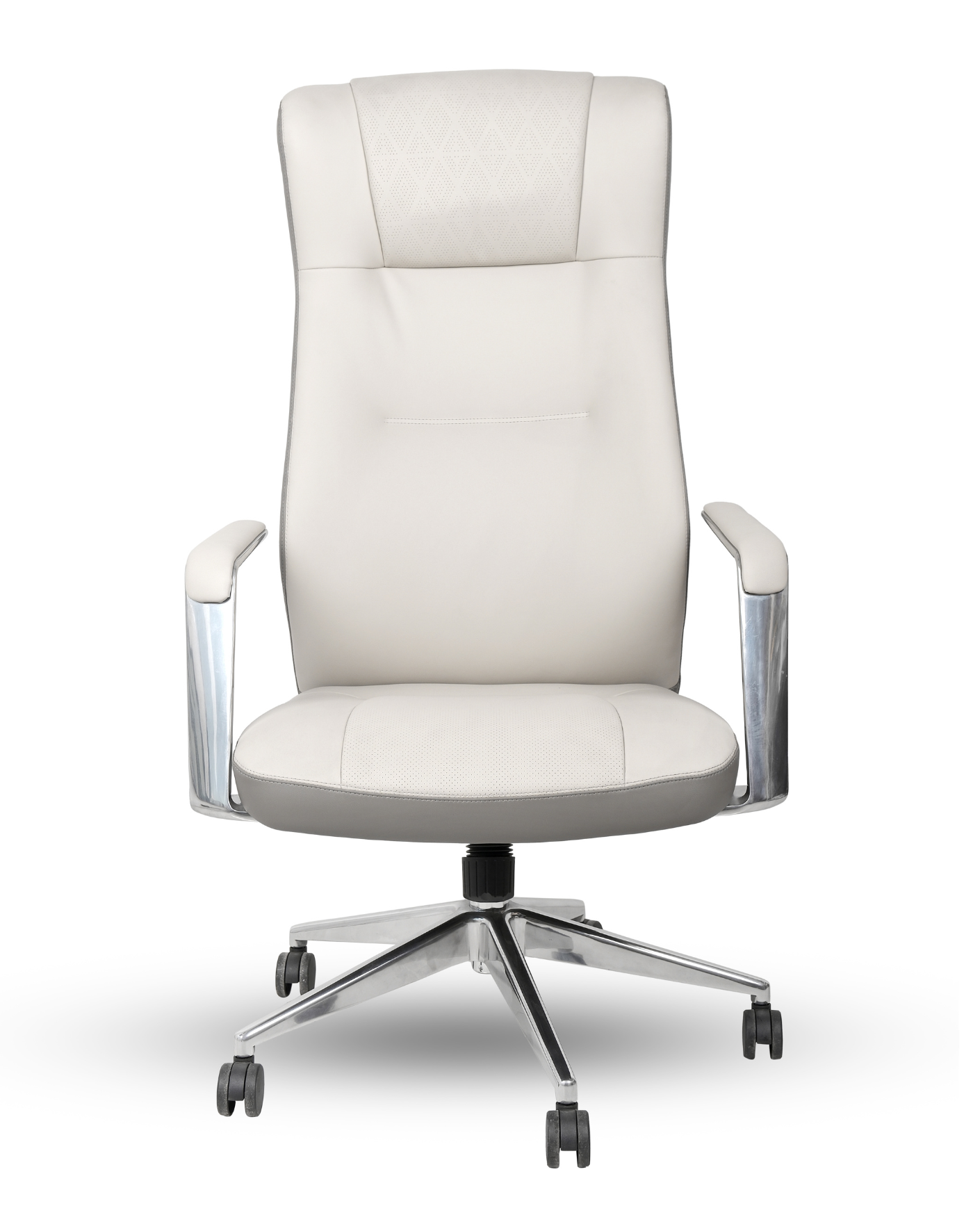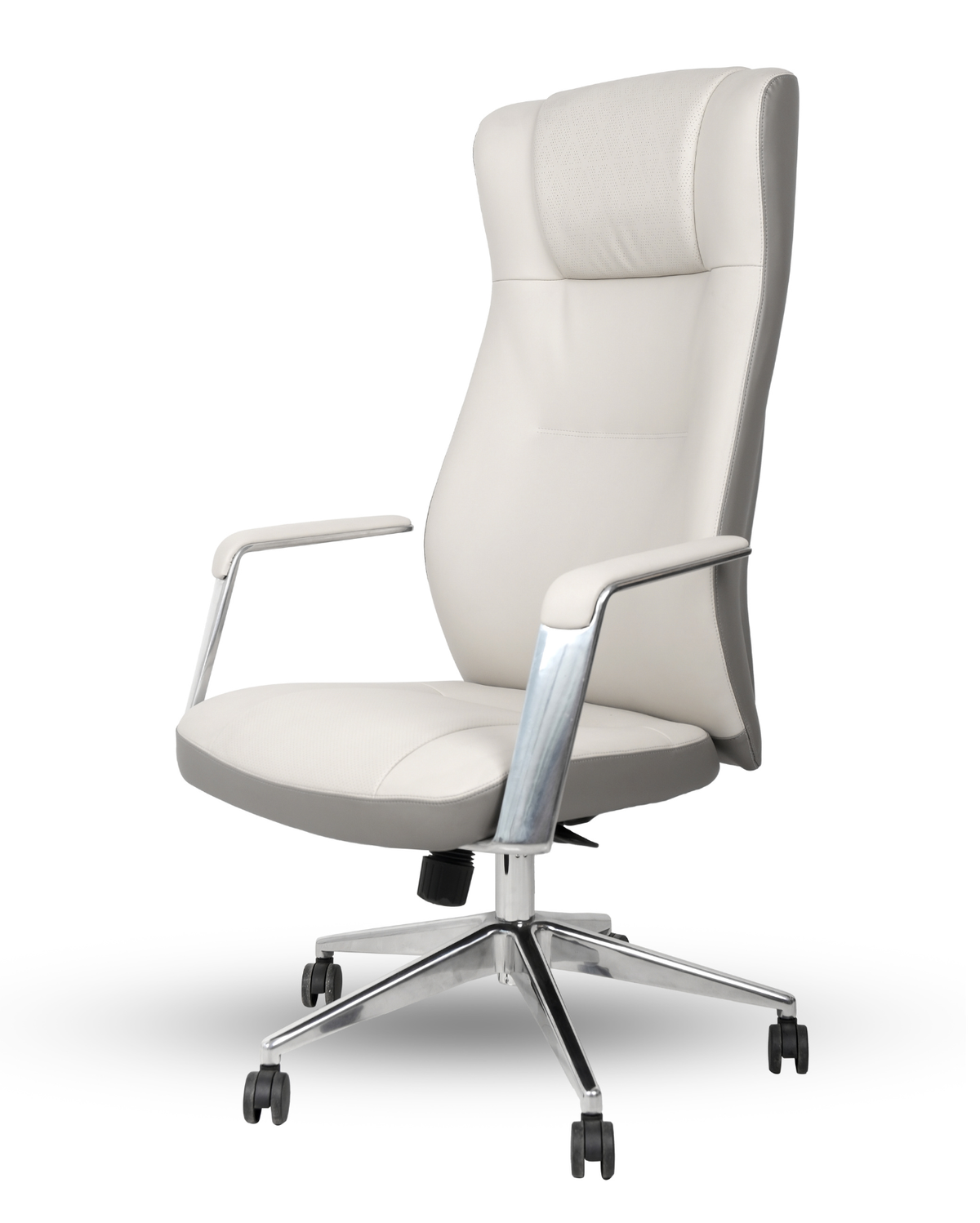 PU LEATHERETTE UPHOLSTERY IN BACK AND SEAT, ALUMINIUM BASE WITH TWIN CASTORS WHEELS, SYNCHRONISED MULTILOCKING MECHANISM, ALUMINIUM HANDLES WITH PU HOLSTERY