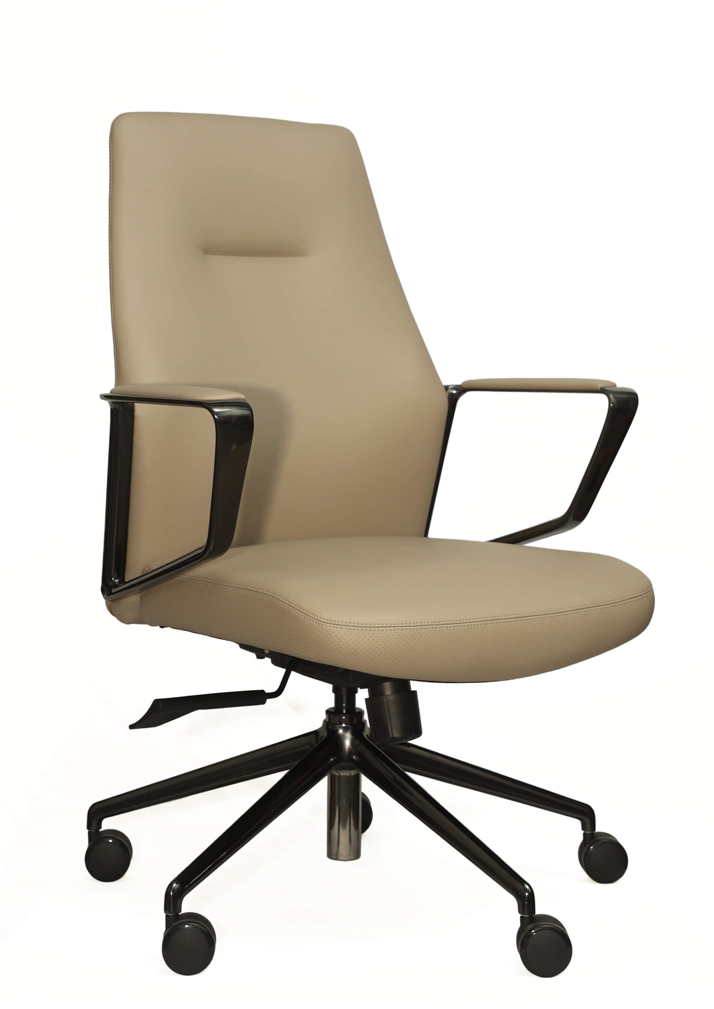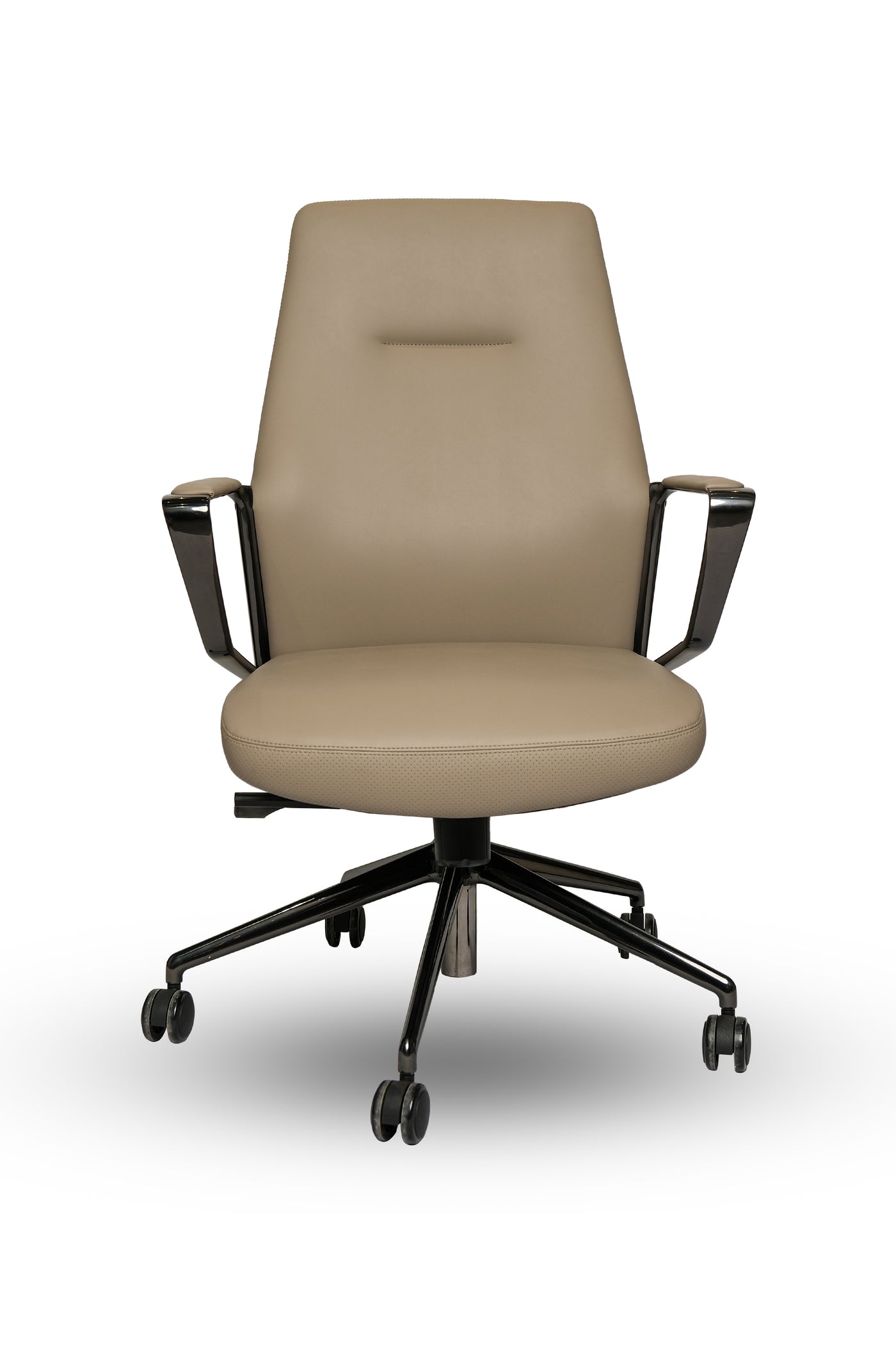 HB leather chair with nickel finish in handles and base, Dunatti synchronised mechanism, fixed armrest, perforated leather in seat, 40–45...