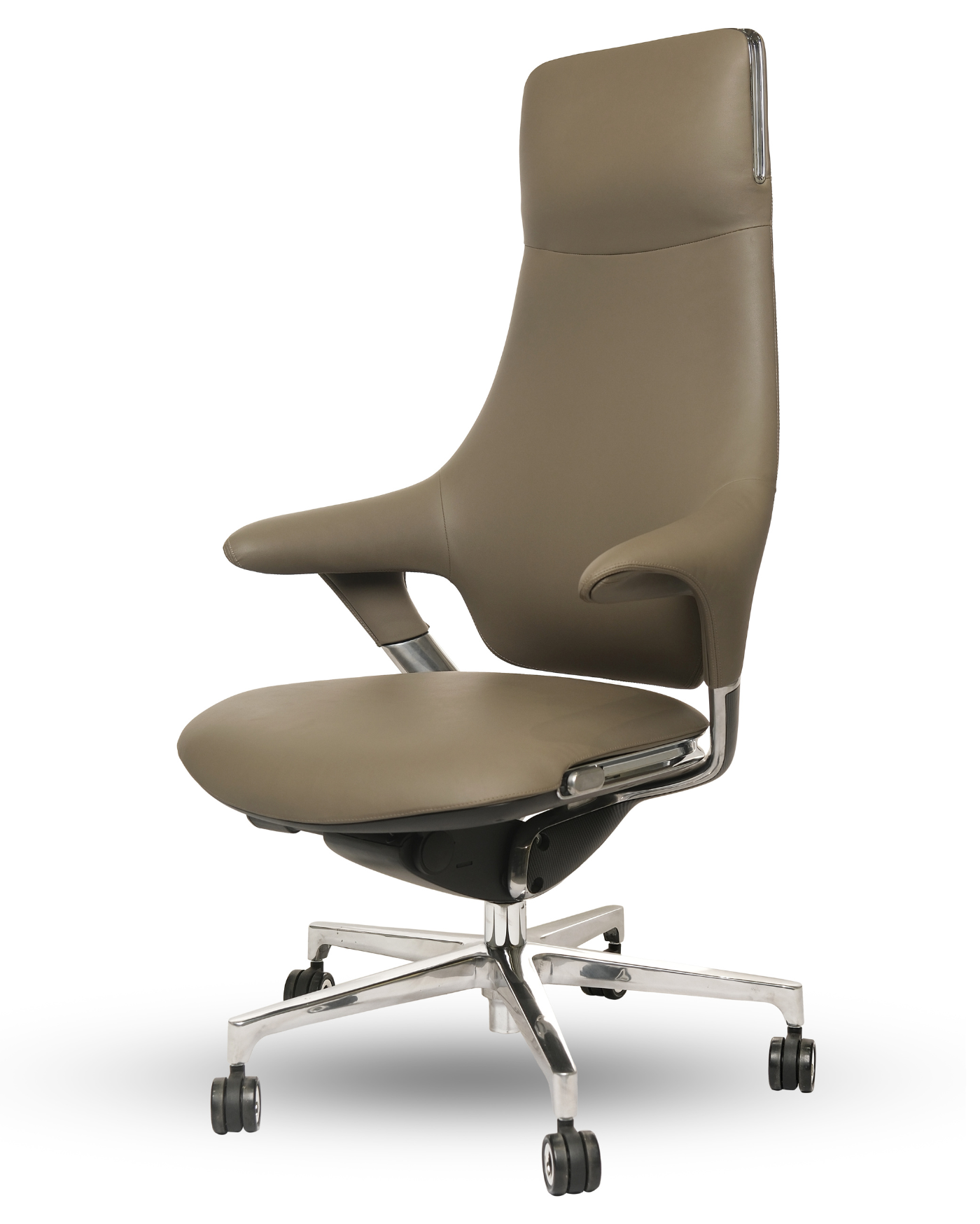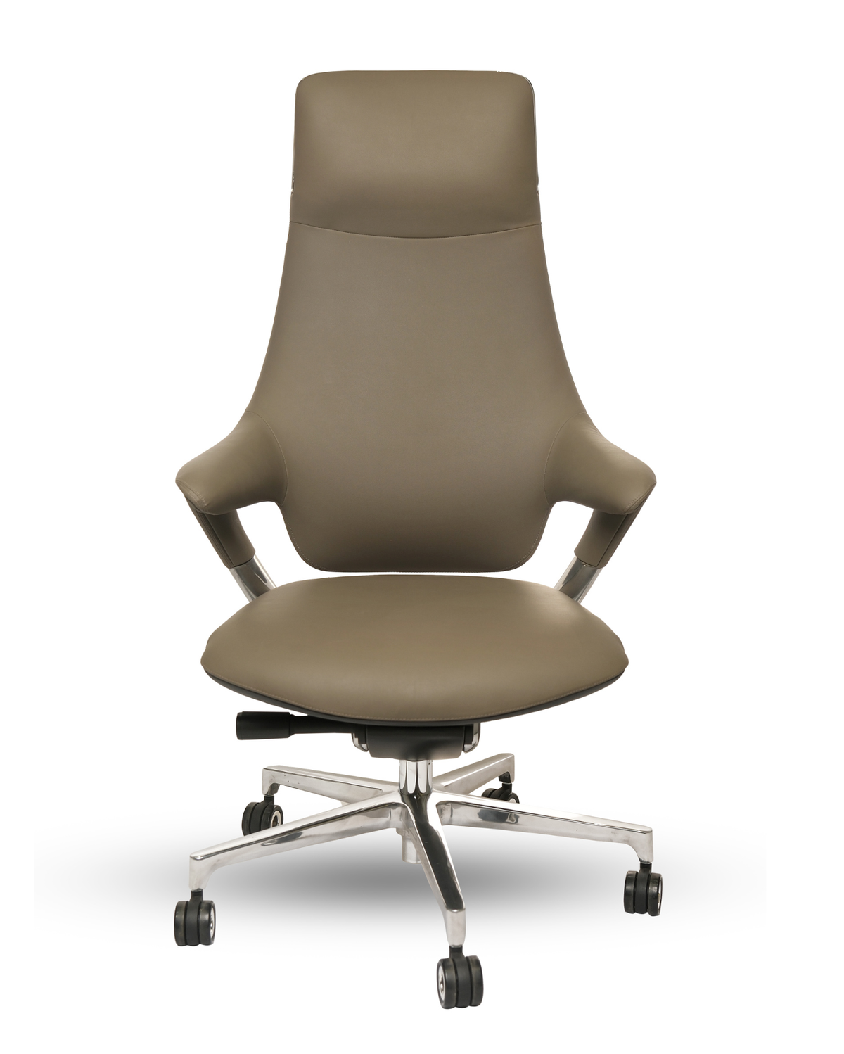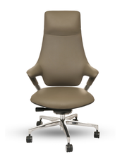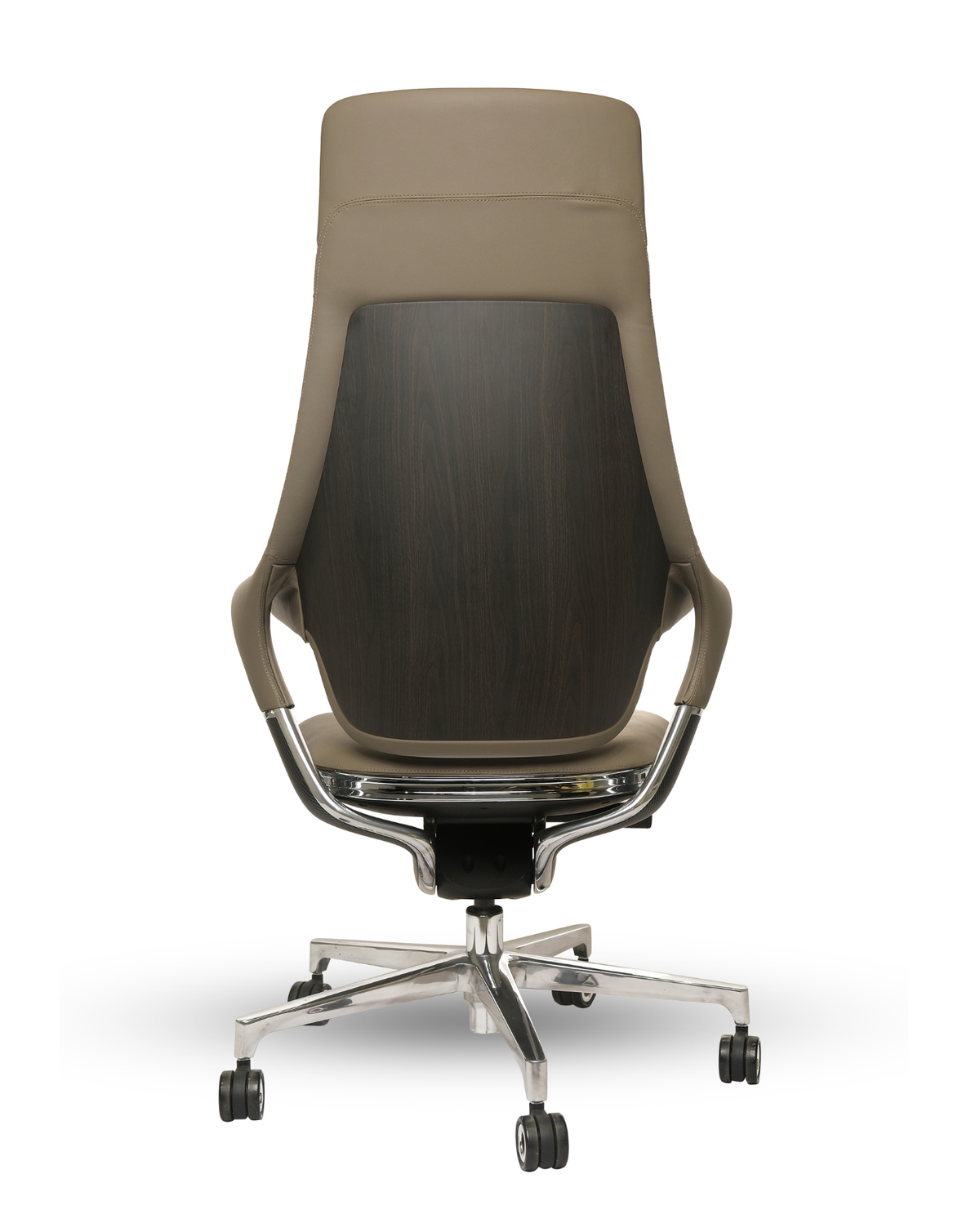 Made in PU leatherette with veneer finish back, fixed armrest, curved lumbar support, multilocking mechanism, aluminium base, Dunatti mechanism, class 5 gaslift with twin castors