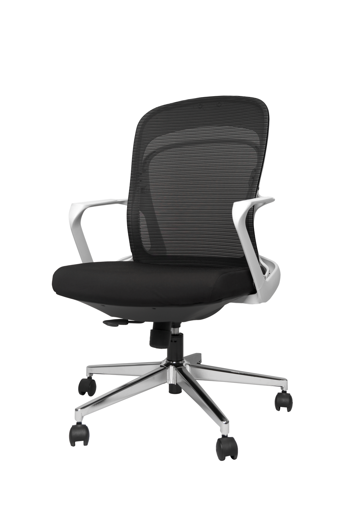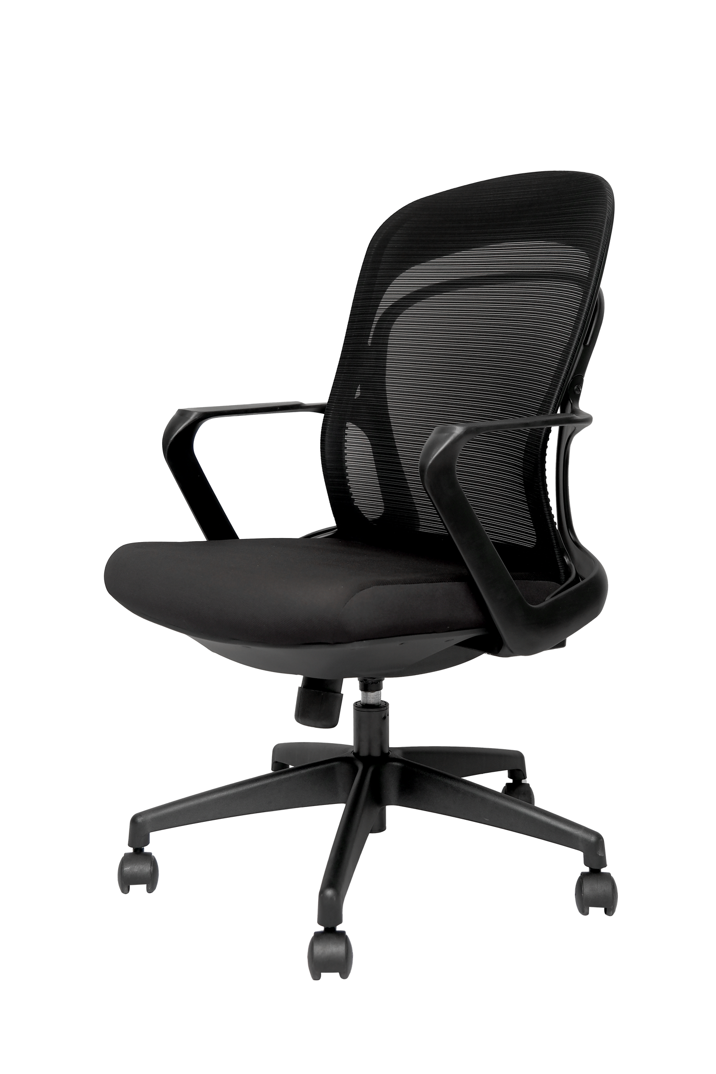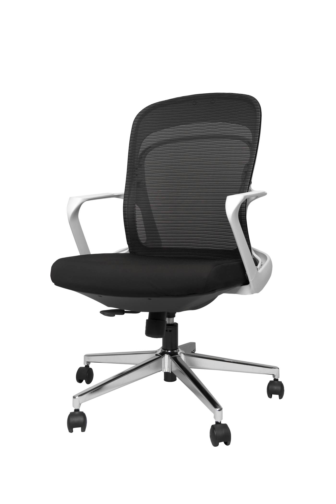 MB mesh chair in tilting mechanism, fixed handrest, Class 4 gaslift, 40-45 mm PU density moulded foam, virgin nylon body, chrome base with twin castors