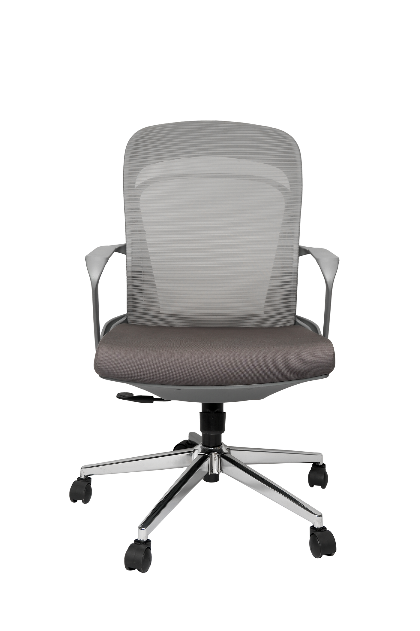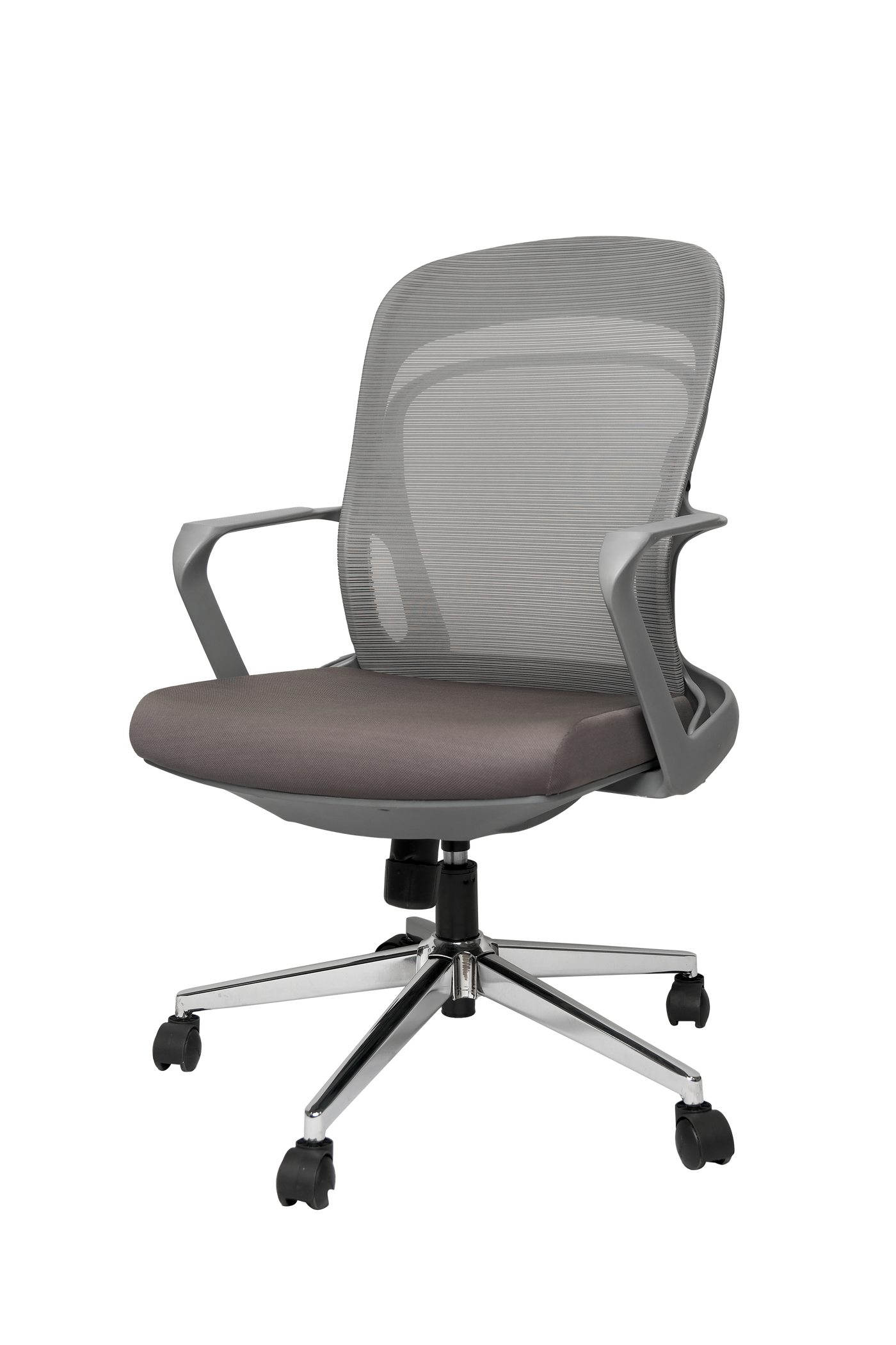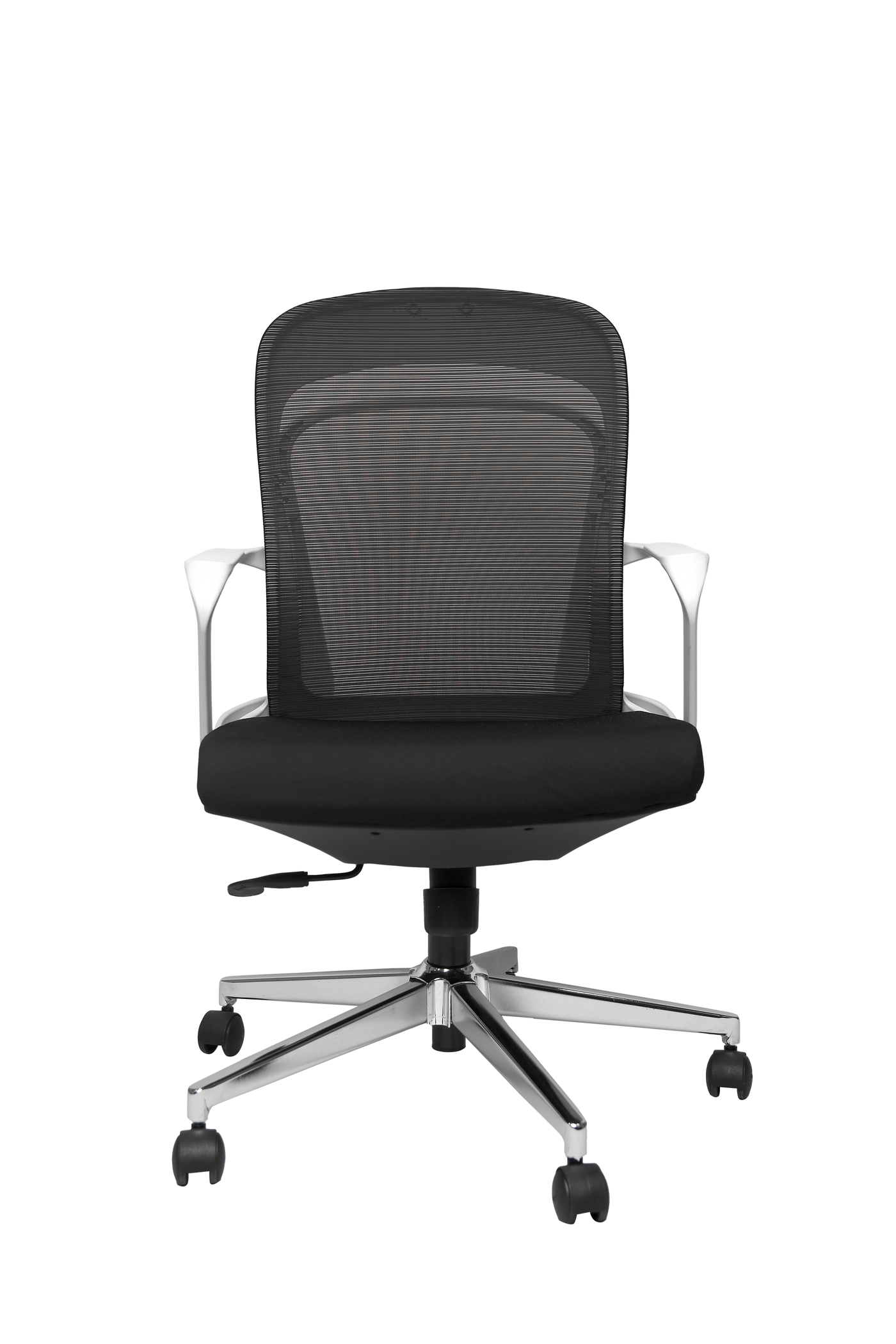 MB mesh chair in tilting mechanism, fixed handrest, Class 4 gaslift, 40-45 mm PU density moulded foam, virgin nylon body, chrome base with twin castors